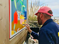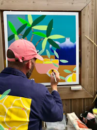 JuLIaN’s lemony works, a fervent defender of color in a grayish world, are invitations to optimism and Joie de Vivre. With a precise work of acrylic, he expresses himself through well structured shades with retro and fluorescent notes. With a simple, efficient and graphic style, he balances his art between lines, shapes and colors. His favorite subject, the lemon, is ultimately a light that gives life to a still life. Always in search of improvements and techniques, he is inspired by his travels and his meetings with other talents. Great names in painting and graphic design such as Henri Matisse, Andy Warhol or David Hockney also influence him. Julian's colorful, playful and vibrant canvases allow him to reach out to the general public, whom he hopes will embrace the happiness and enthusiasm that animates his daily life.